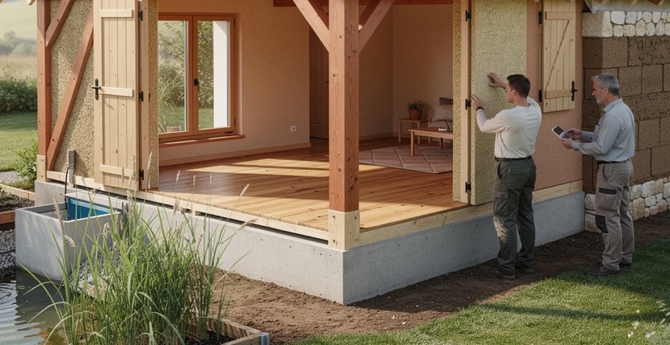 Sur le plan thermique, un mur en pisé ne remplace pas toujours l’isolant mais il apporte une inertie précieuse, notamment dans les régions à forts écarts de température entre le jour et la nuit. Combiné à une isolation par l’extérieur en fibre de bois, il forme une enveloppe bioclimatique très performante. Le pisé nécessite toutefois une mise en œuvre soigneuse par des artisans formés : dosage en eau, granulométrie de la terre, compacité. Un drainage soigné au pied des murs et des débords de toiture généreux sont indispensables pour protéger la base des murs de l’eau de ruissellement.