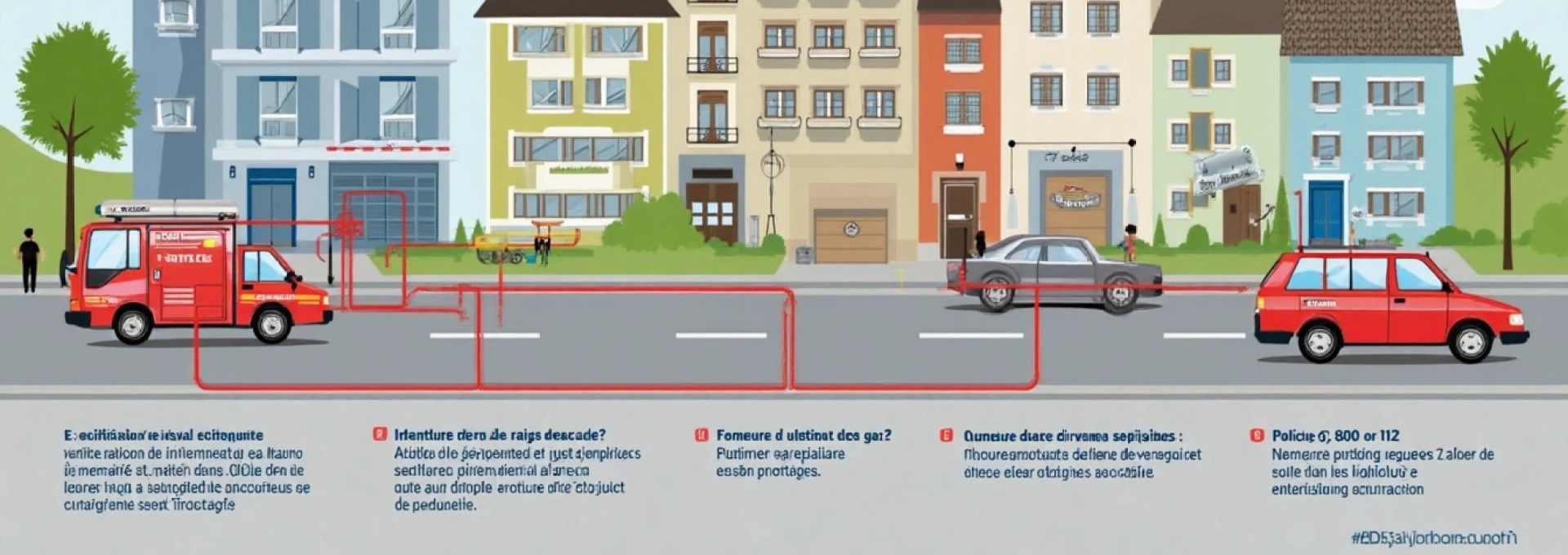Lorsqu’une fuite de gaz est suspectée dans la rue, il est primordial de suivre un protocole d’urgence bien défini. La rapidité et l’efficacité de la réaction peuvent faire toute la différence entre une situation maîtrisée et une catastrophe. Voici les étapes essentielles à suivre :